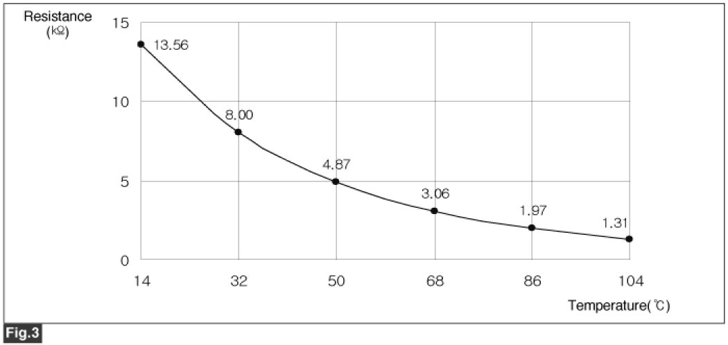 Fig.3) Specifications : Resistance value of evaporator sensor as a function of temperature