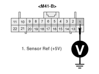 3. Measure voltage value between terminal "1" of A/C control unit and chassis ground.