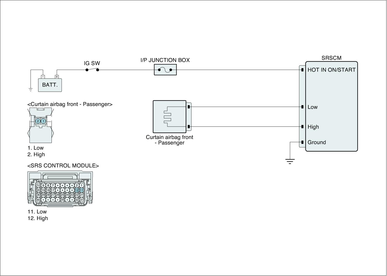 If you strike or spin the SRSCM at the IG "ON" state, the seat-belt pretensioner, curtain-airbag or side-airbag could be unfolded and bring on danger. Handle it with care.