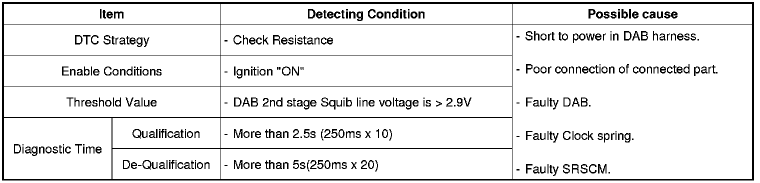 Never measure resistance of DAB directly, Current of measuring device may cause unexpected air bag deploy.