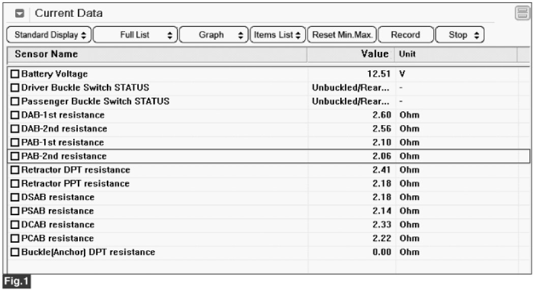 B1485 Passenger Airbag Resistance too High (2nd stage) - Scantool Diagnostics