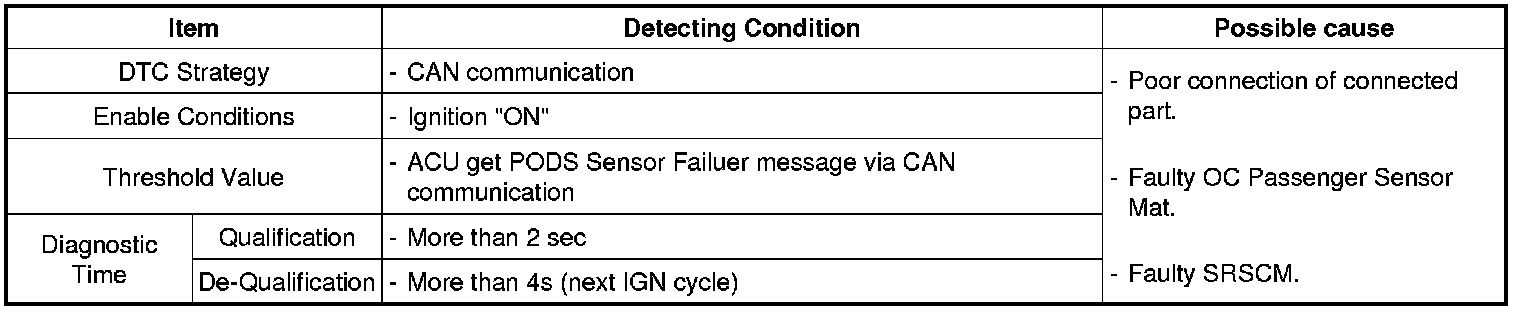 B1490 PODS (Passenger Occupant Detecting System) Sensor (Bladder) Defect - General Information