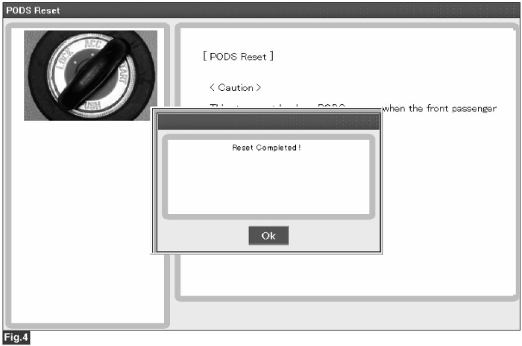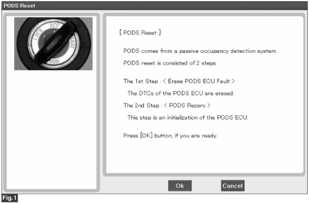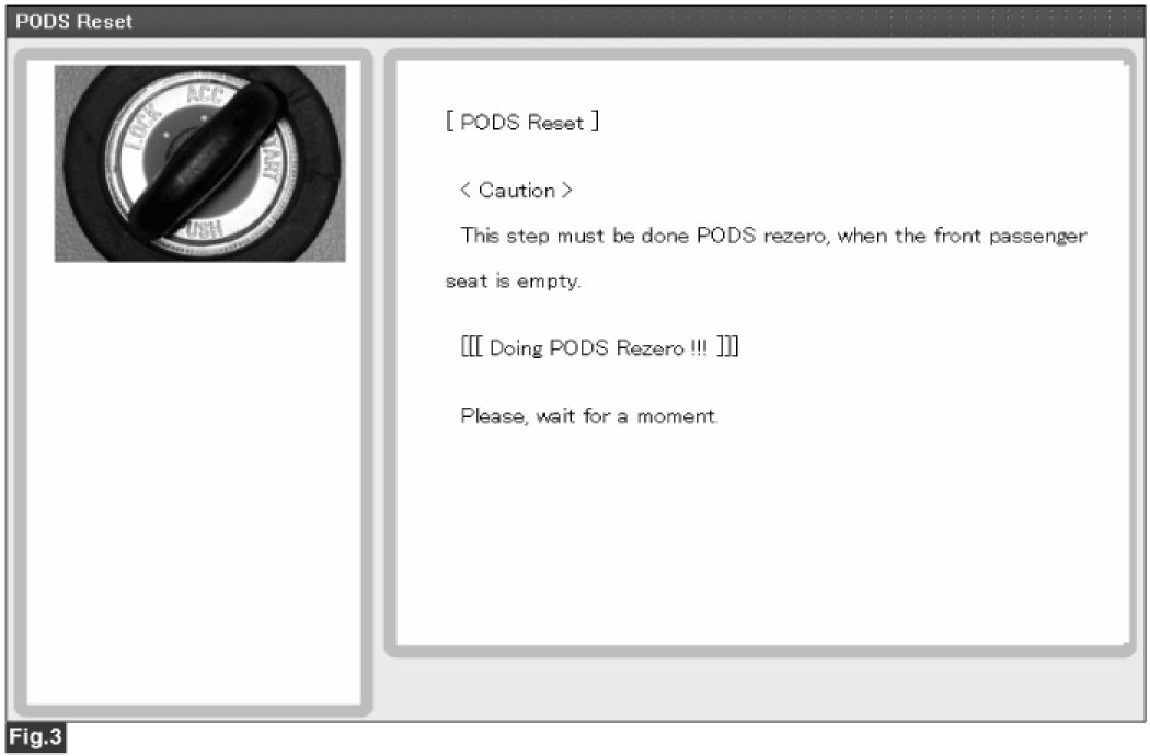 2. Ignition "ON" & Engine "OFF", select Passenger Occupant Detecting System and select "PODS Reset" mode.
