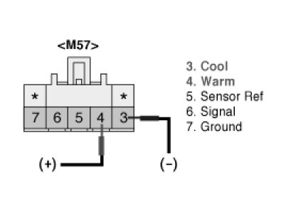 (5) Verify that the temperature actuator operates to the warm position with reverse connecting. ((+) to 4 and (-) to 3)