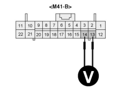 3. Measure voltage between terminal "13" and "14" of A/C Control Unit while operating the temp switch.