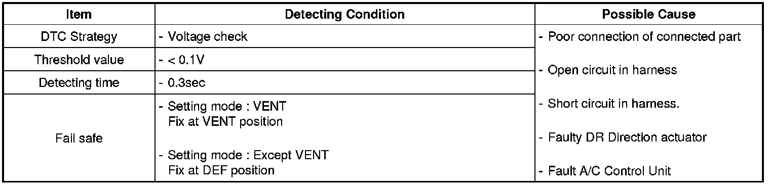 The mode control actuator mounted on heater unit adjusts position of mode door by operating Direction Motor in accordance with signal of A/C control unit. Pressing mode select switch makes the mode control actuator shift in order of vent-> B/L -> floor -> mix.