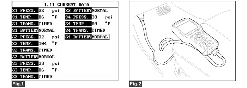 4. Monitor the parameter of "S4 BATTERY" on the 'TPMS exciter' or scantool.