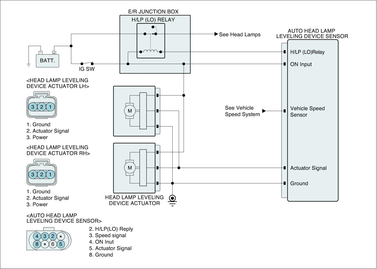 AHLS provides driver with the best visibility by adjusting vertical direction of the headlamp. It consists of ECM, Linkage and actuator. The height sensor measures the angular displacement of lever by measuring the magnetic field of stator parts formed by rotation of rotor.