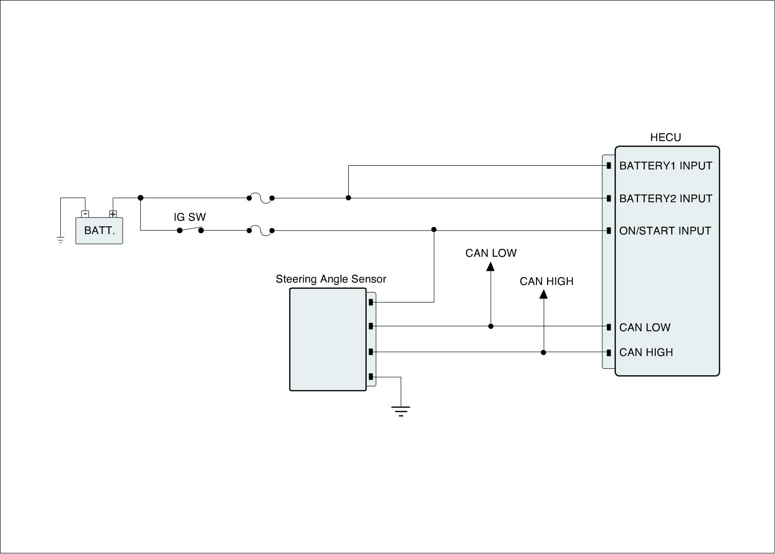 The Steering angle sensor (SAS) is installed below the clock spring and it sends messages to HECU through CAN communication line.