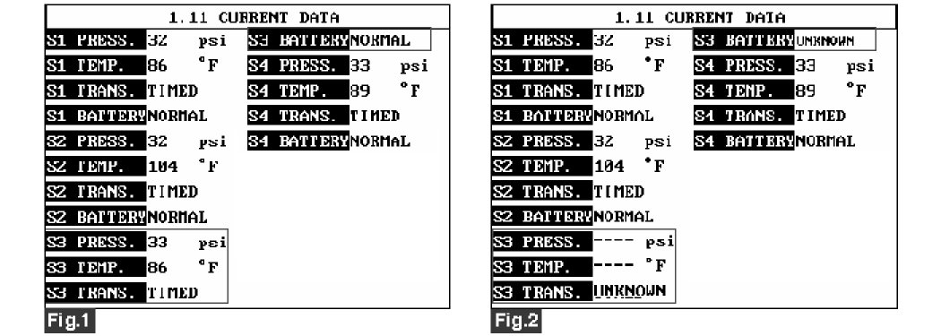 4. Monitor the parameters of 'Rear Left WE sensor (S3)' on the 'TPMS exciter' or scantool.