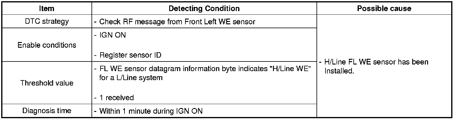 This DTC indicates that "H/Line WE sensor" was installed to a L/Line system incorrectly.