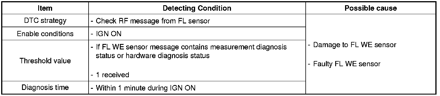 Each vehicle wheel is fitted with a Wheel Electronic (WE) sensor unit attached to the valve on the inside of the wheel. The WE unit is powered with a self-contained battery utilizing a high temperature rated CR (Manganese Dioxide Lithium) chemistry. The operating voltage range for the WE module is 2.2 Vdc to 3.6 Vdc, and the operating temperature range is -40 °F to 257 °F (-40 °C ~125 °C). The WE measures tire pressure, temperature, and acceleration periodically. The pressure, temperature, and acceleration information is converted to digital form within the MCU inside the WE sensor.