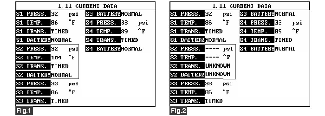 4. Monitor the parameters of 'Front Right WE sensor (S2)' on the 'TPMS exciter' or scantool.