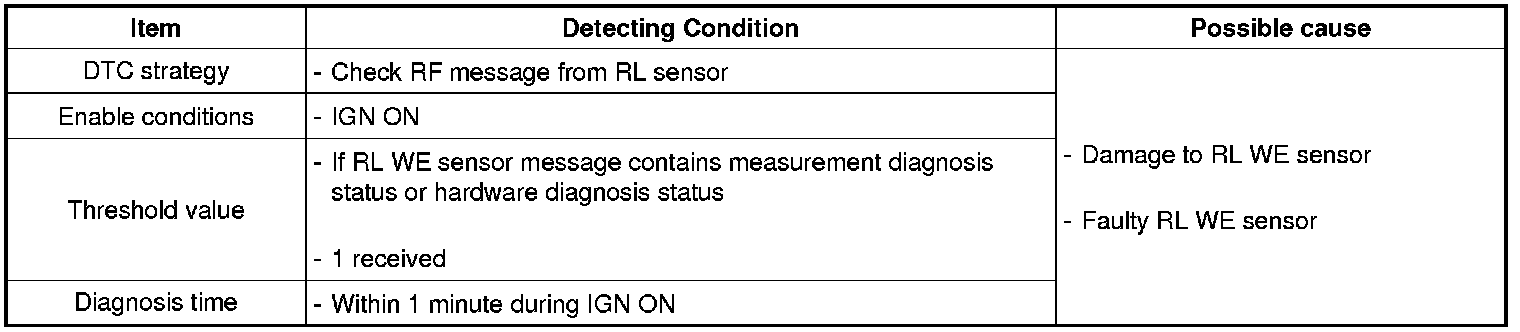 This DTC indicates that the Rear Left sensor has detected that it has an internal fault (measurement diagnosis or hardware diagnosis status). The most likely cause is sensor failure.