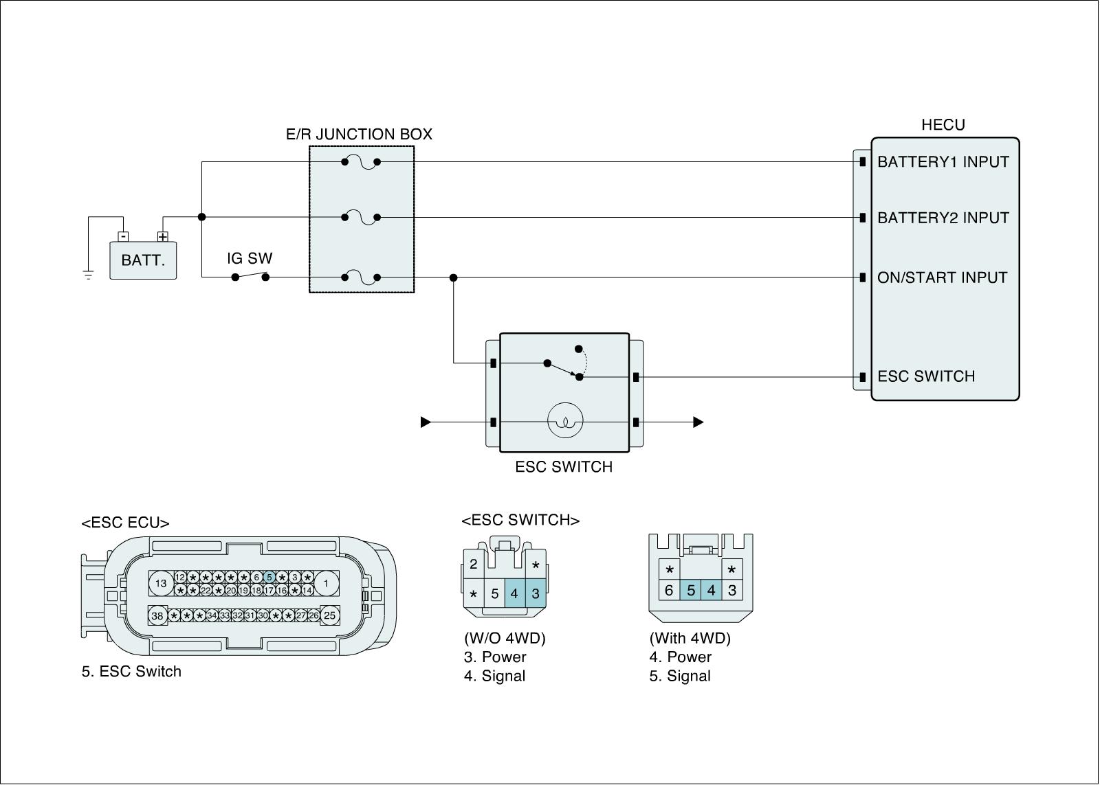 When the ESC switch failure is set, Warning lamps won't illuminate and HECU allow the ABS/EBD/ESC control.