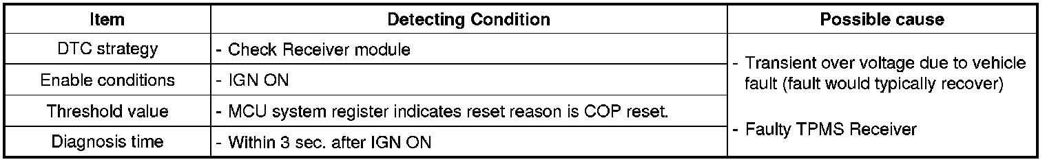 This DTC indicates that the receiver has detected an internal error. The most likely cause is TPMS Receiver failure.