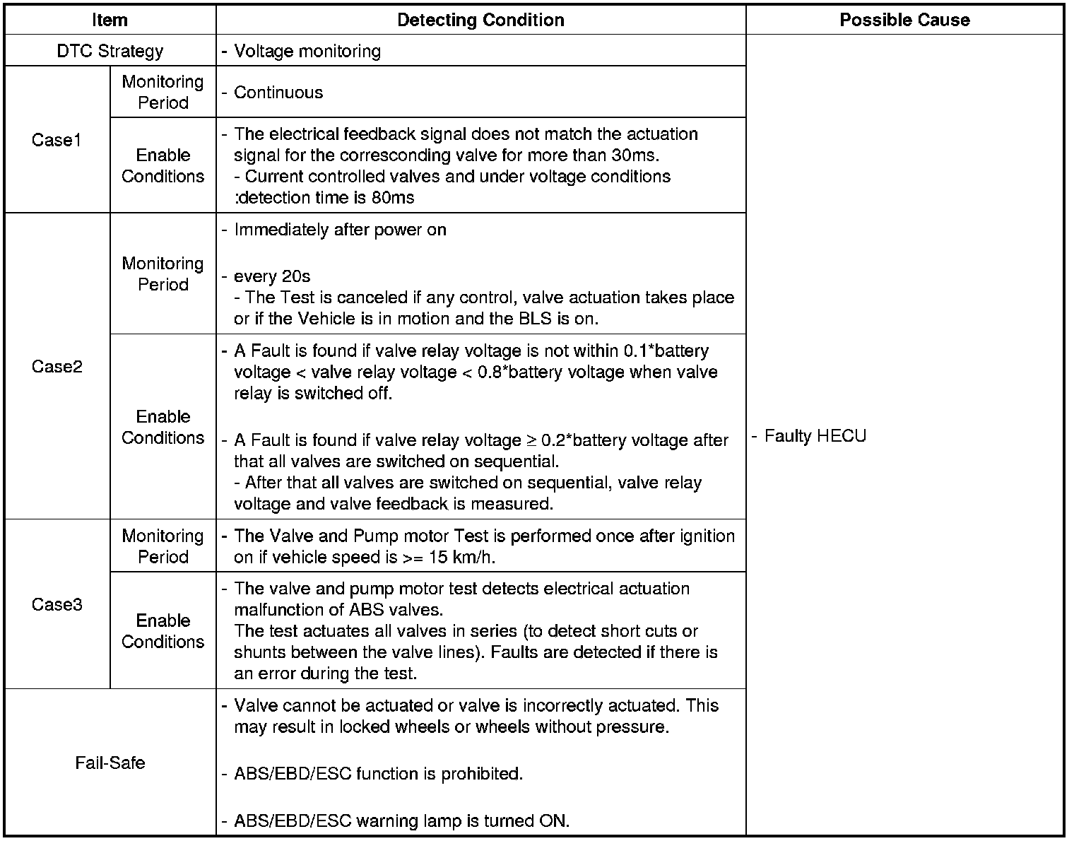 The HECU monitors the operation of the valves by checking the drive circuit of the solenoid valves, and then sets this code when the unexpected drive voltage is detected.