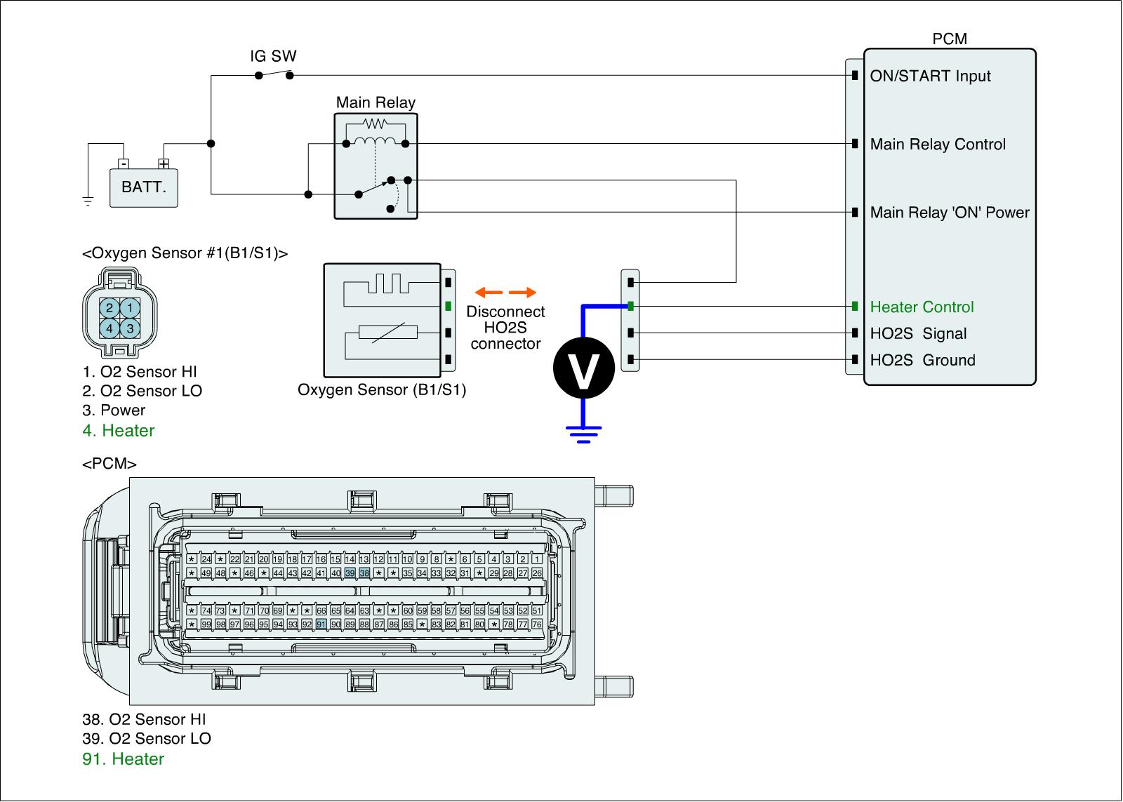 1. IG "OFF" & Disconnect HO2S (B1/S1) connector.