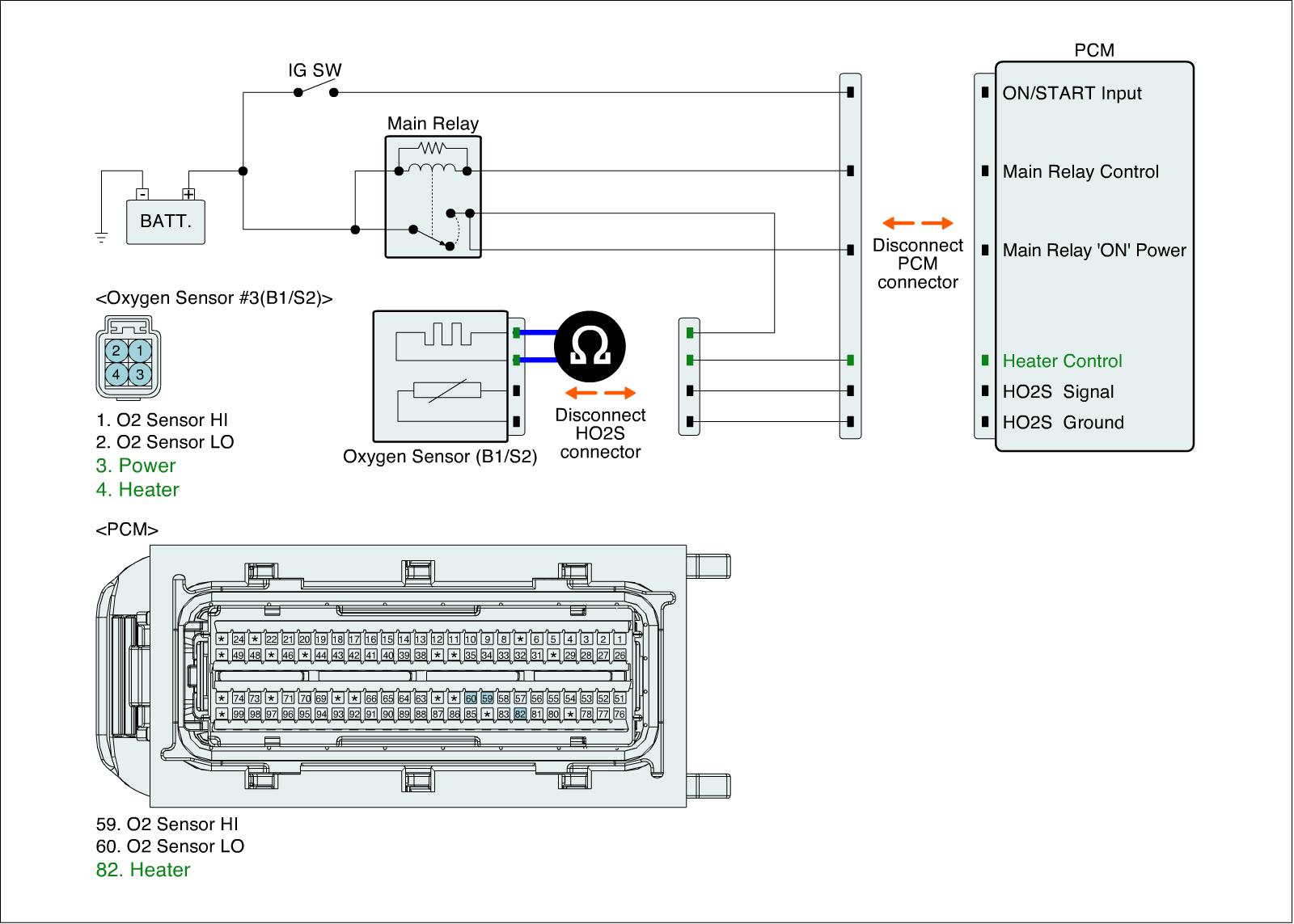 1. IG "OFF" and disconnect HO2S (B1/S2) connector