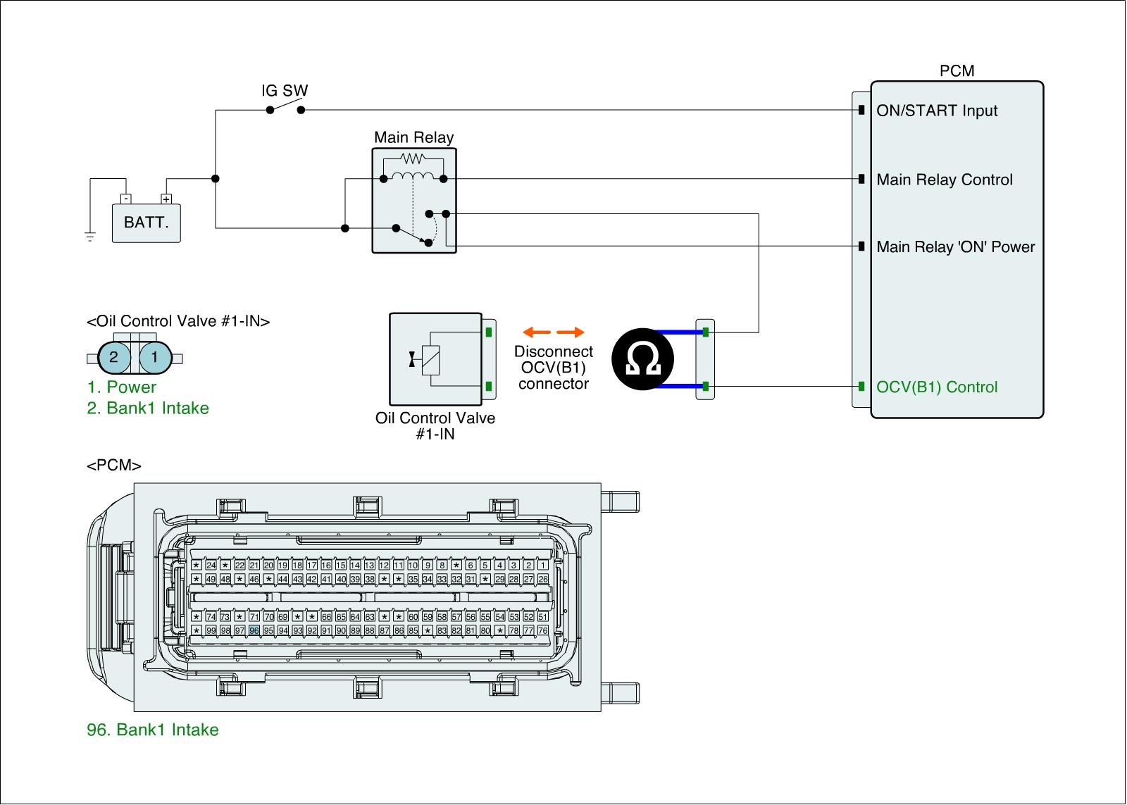 1. IG "OFF" & Disconnect OCV connector.