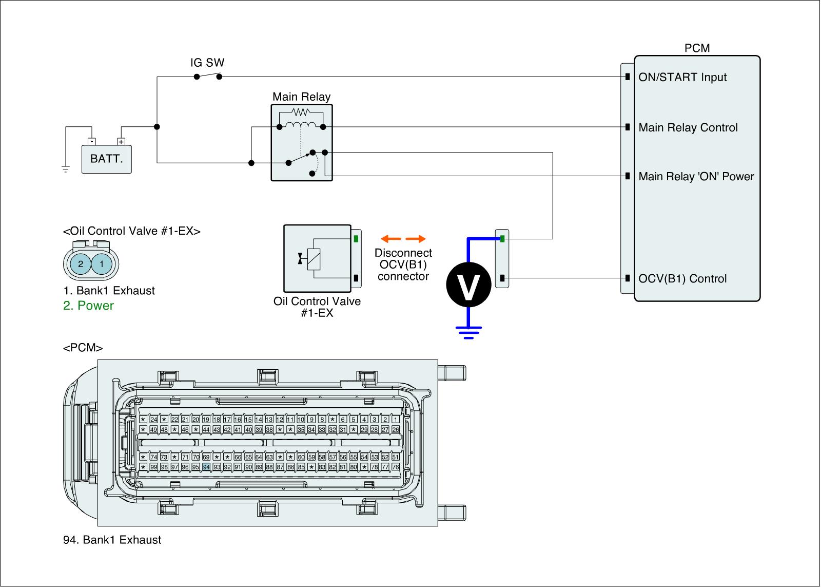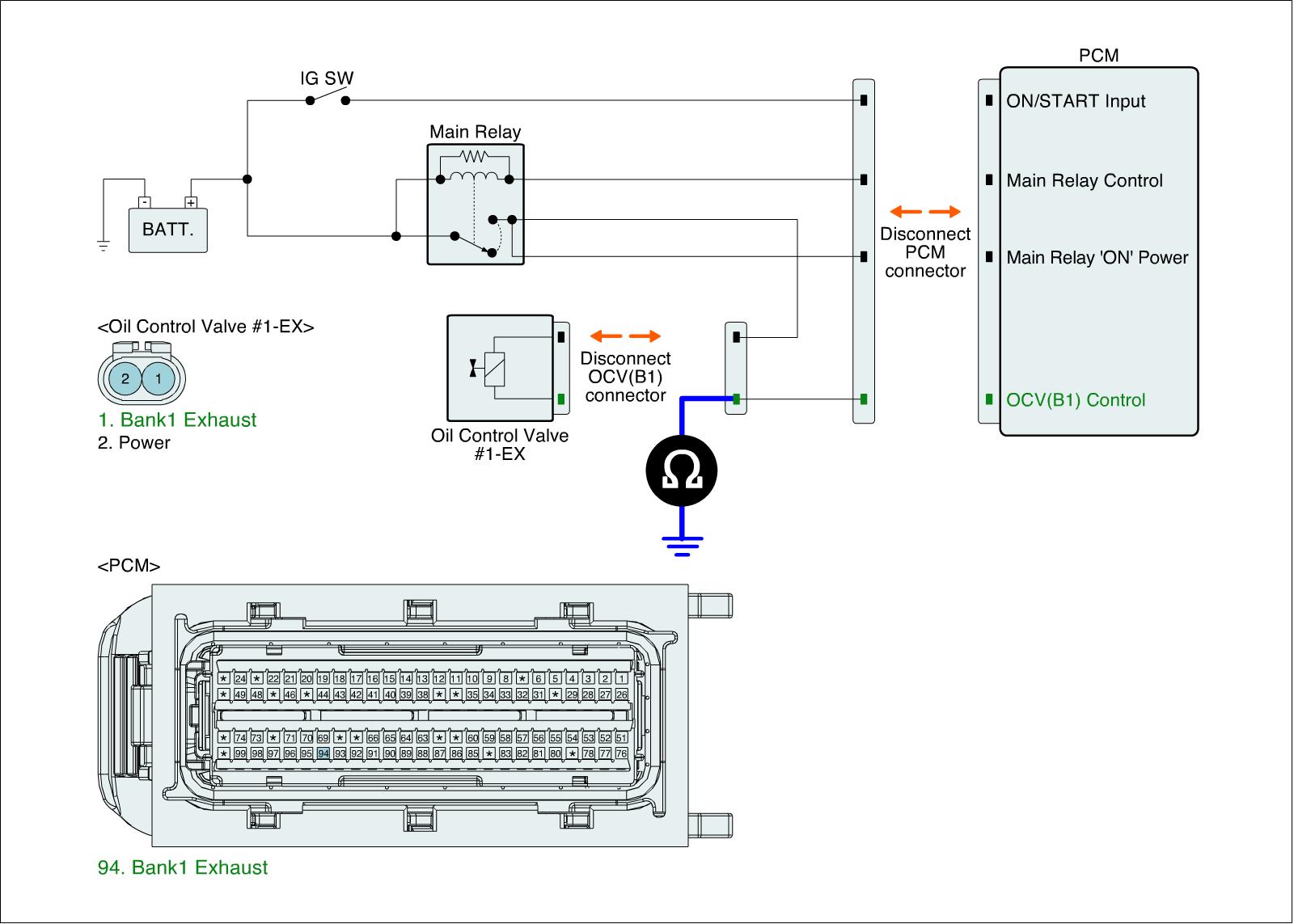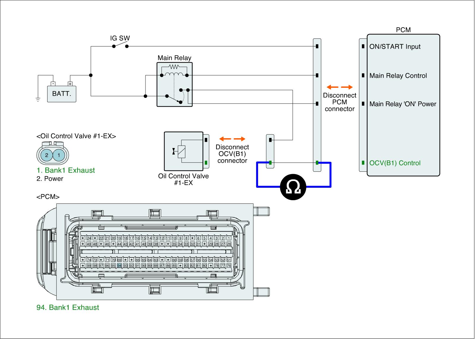 1. IG "OFF" and disconnect OCV and ECM connector.