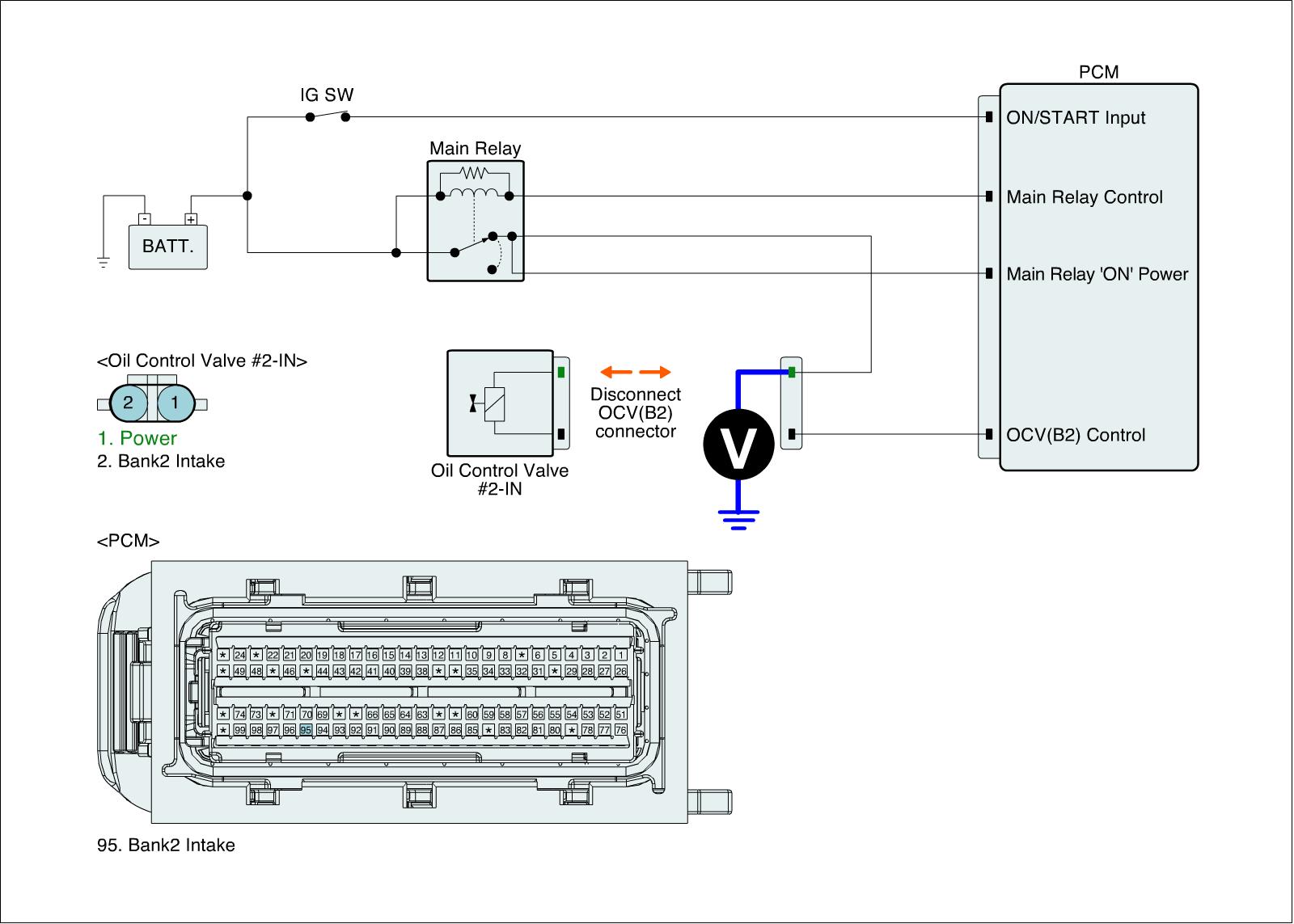 3. Measure voltage between power terminal of OCV harness connector and chassis ground.