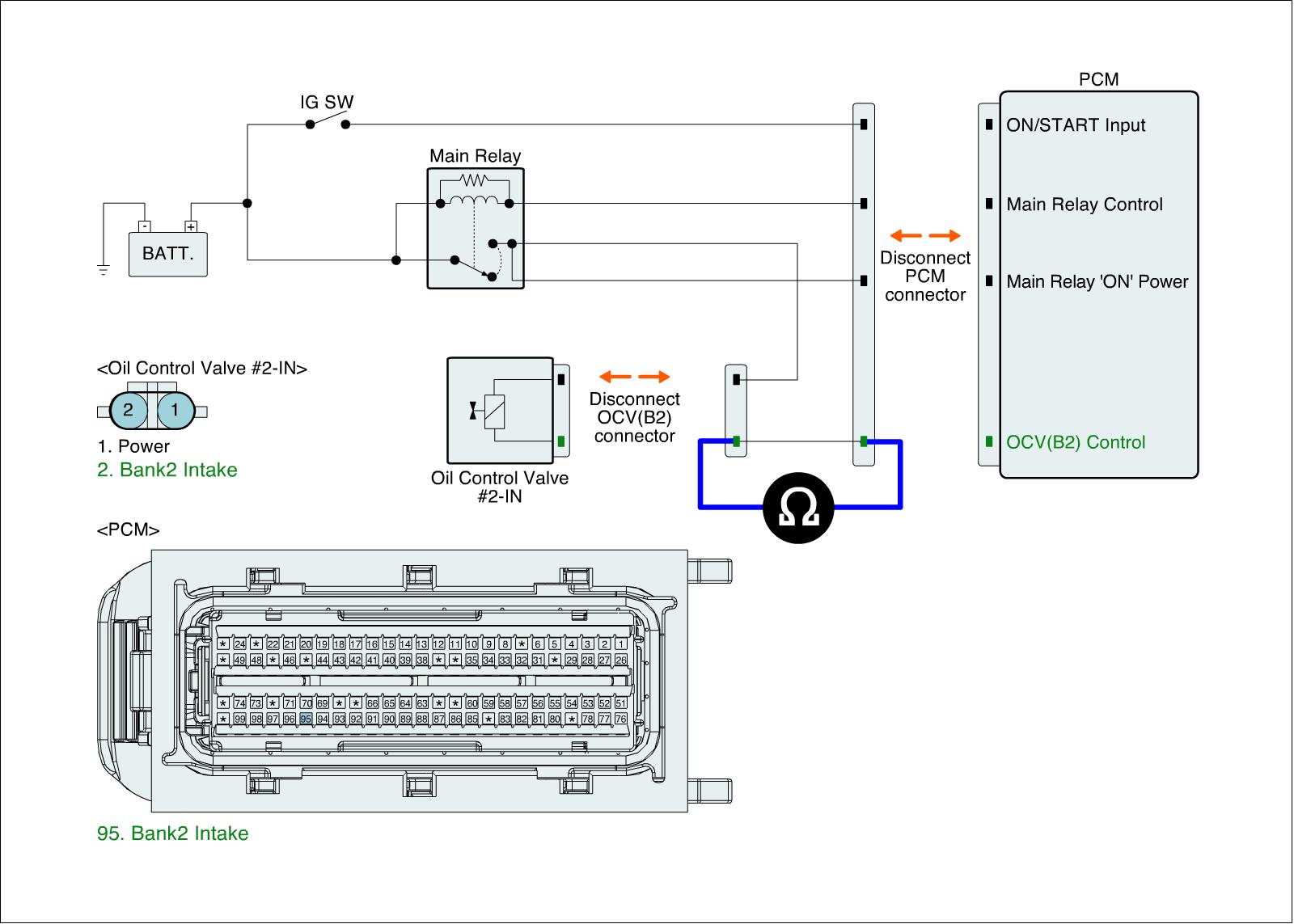 1. IG "OFF" and disconnect OCV and ECM connector.