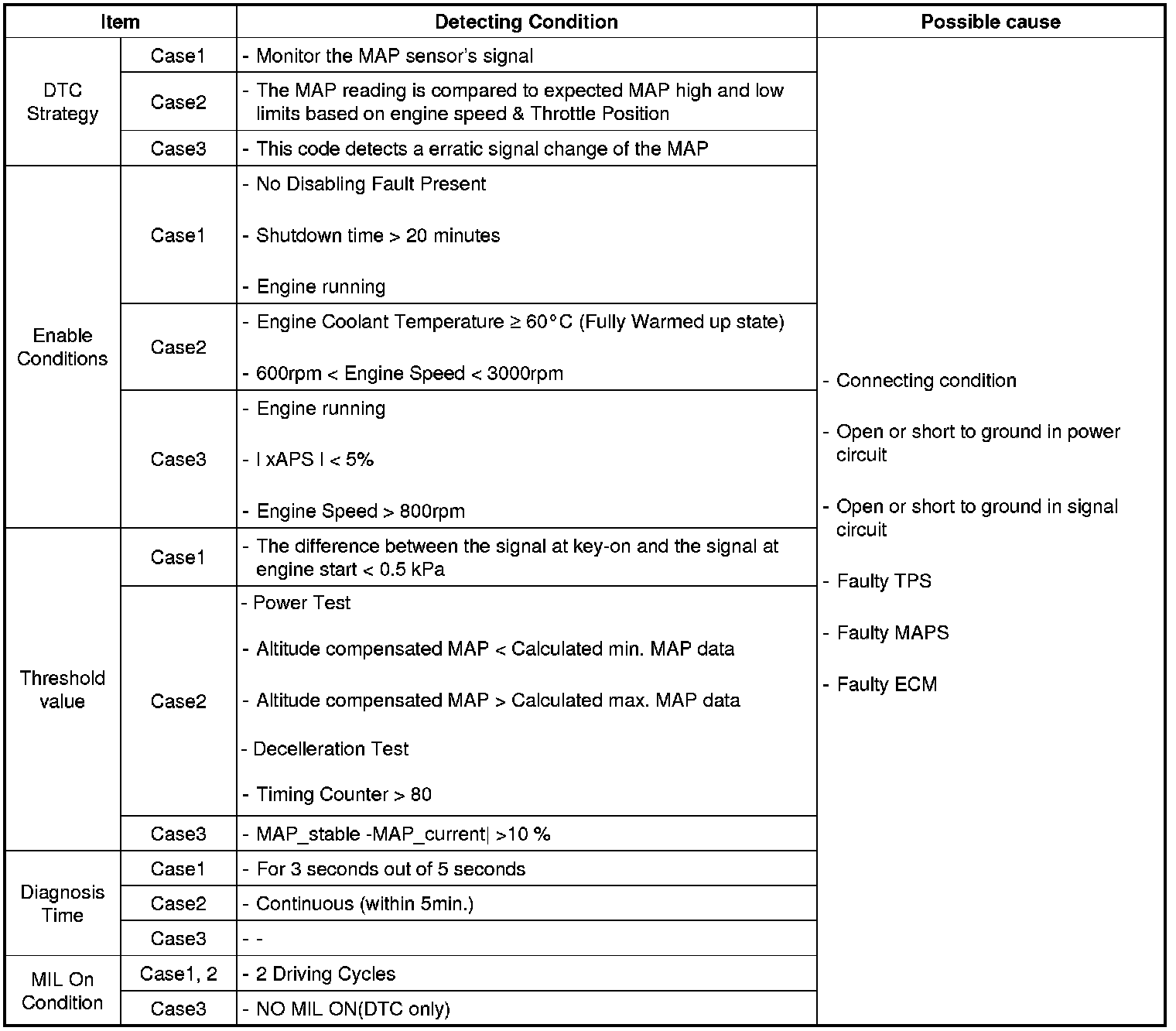 It is necessary that MAPS should be checked along with TPS. Because the MAP/TPS rationality diagnostic is comprised of two tests. A deceleration test is performed to provide a robust method for detection of an altitude compensated MAP value that is too high for the deceleration condition. The second test compares the altitude compensated MAP value to both high and low limits, dependent upon throttle position and engine speed. When the MAP value is out of the threshold range, the MAP/TPS system is determined to be failed.