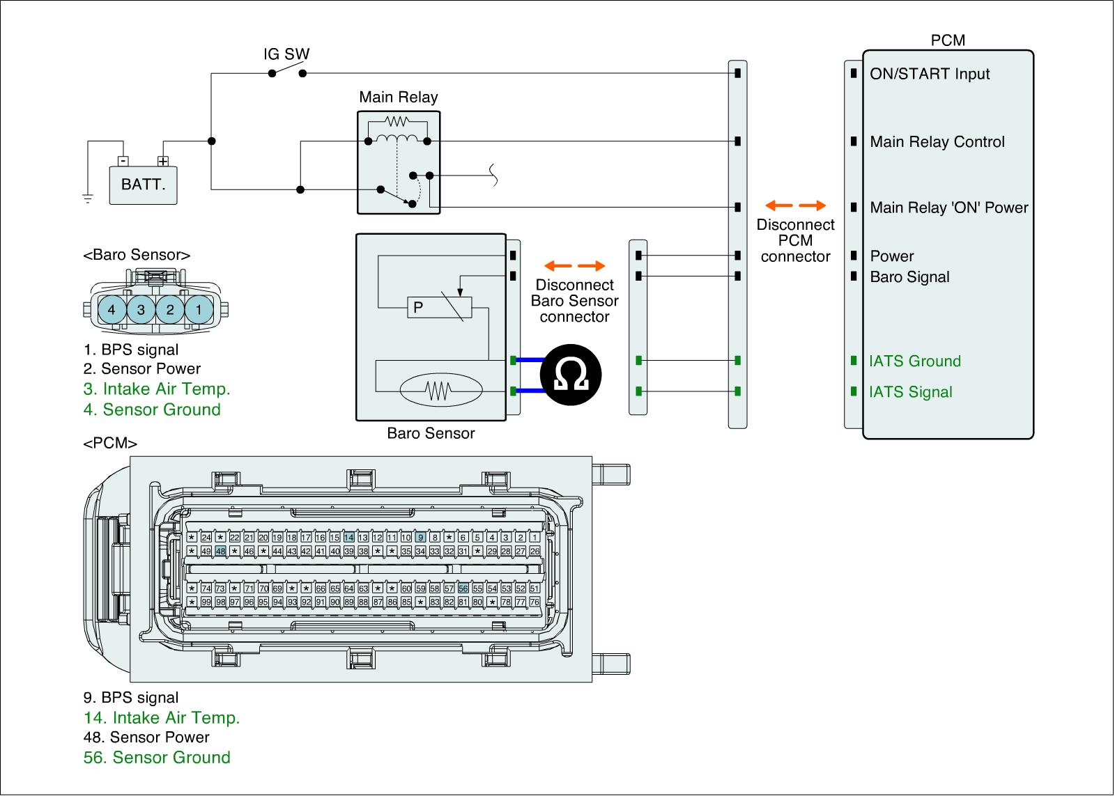 2. Measure resistance between signal and ground terminals of IATS connector after checking out the temperature of IATS with scantool (Component Side)