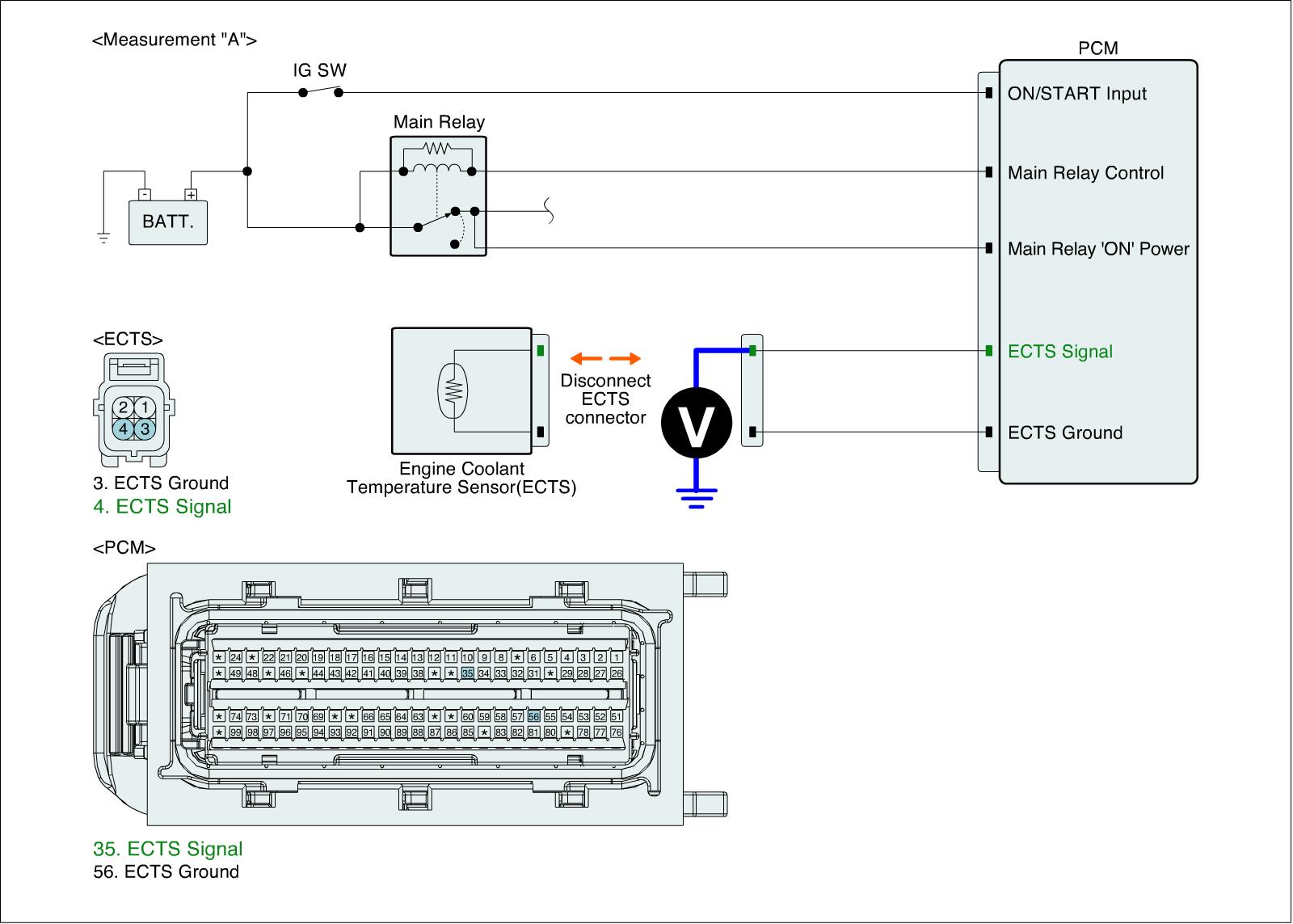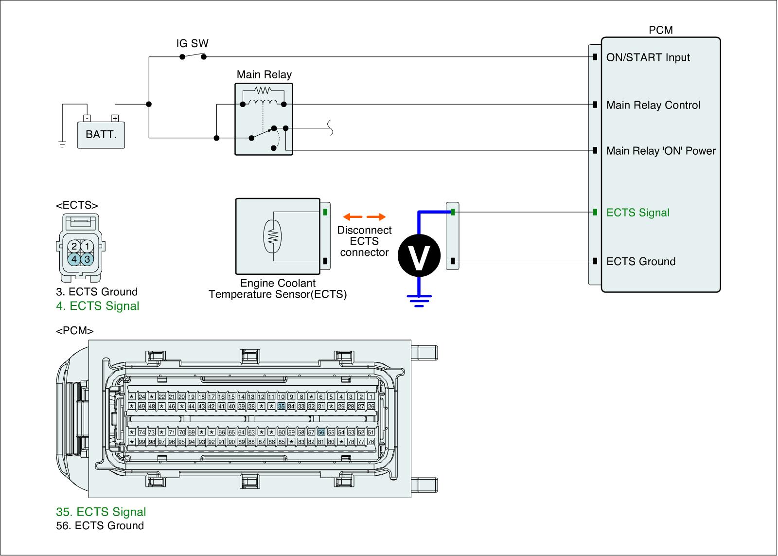 3. Measure voltage between signal terminal of ECTS harness connector and chassis ground.