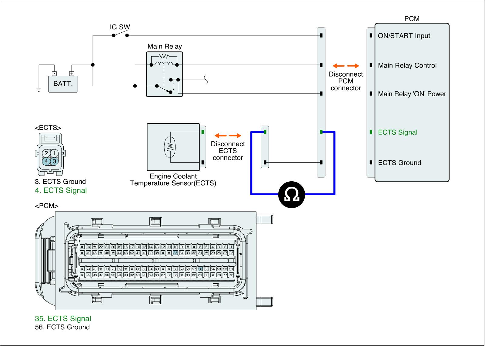 1. IG "OFF" and disconnect ECTS connector and ECM connector.
