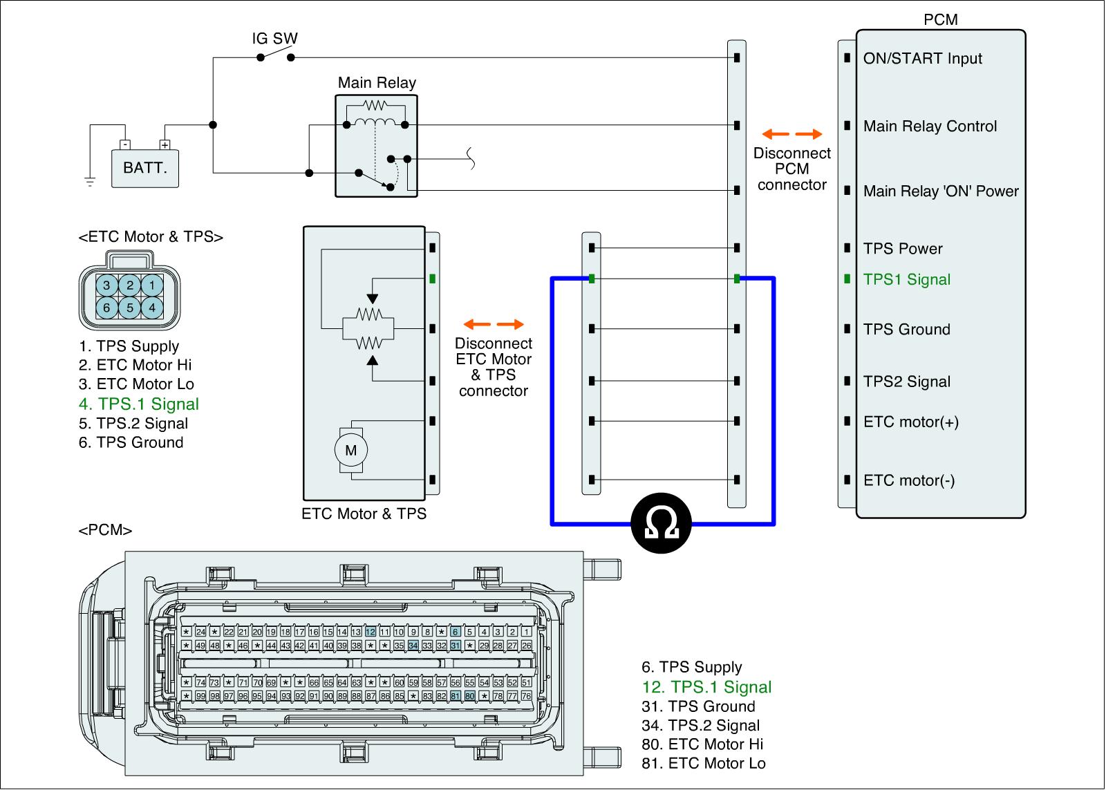 1. IG "OFF" and disconnect ETC Motor & TPS connector and ECM connector.
