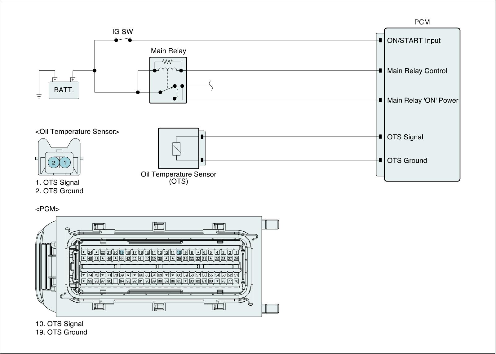 The fluid of the CVVT is the engine oil and its density changes according to the engine oil temperature. At this time the Oil Temperature Sensor (OTS) helps compensation against the temperature differences. The Oil Temperature Sensor measures the engine oil temperature before the engine oil comes into the Oil-flow Control Valve (OCV).