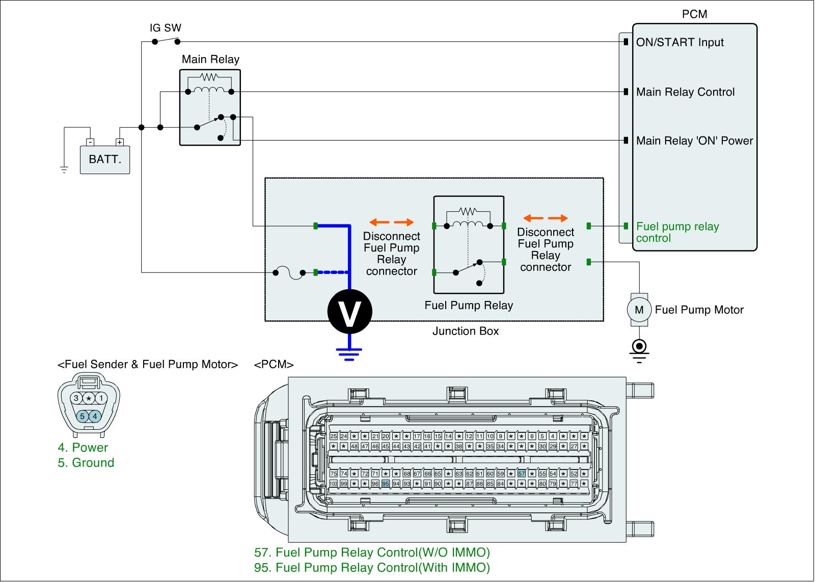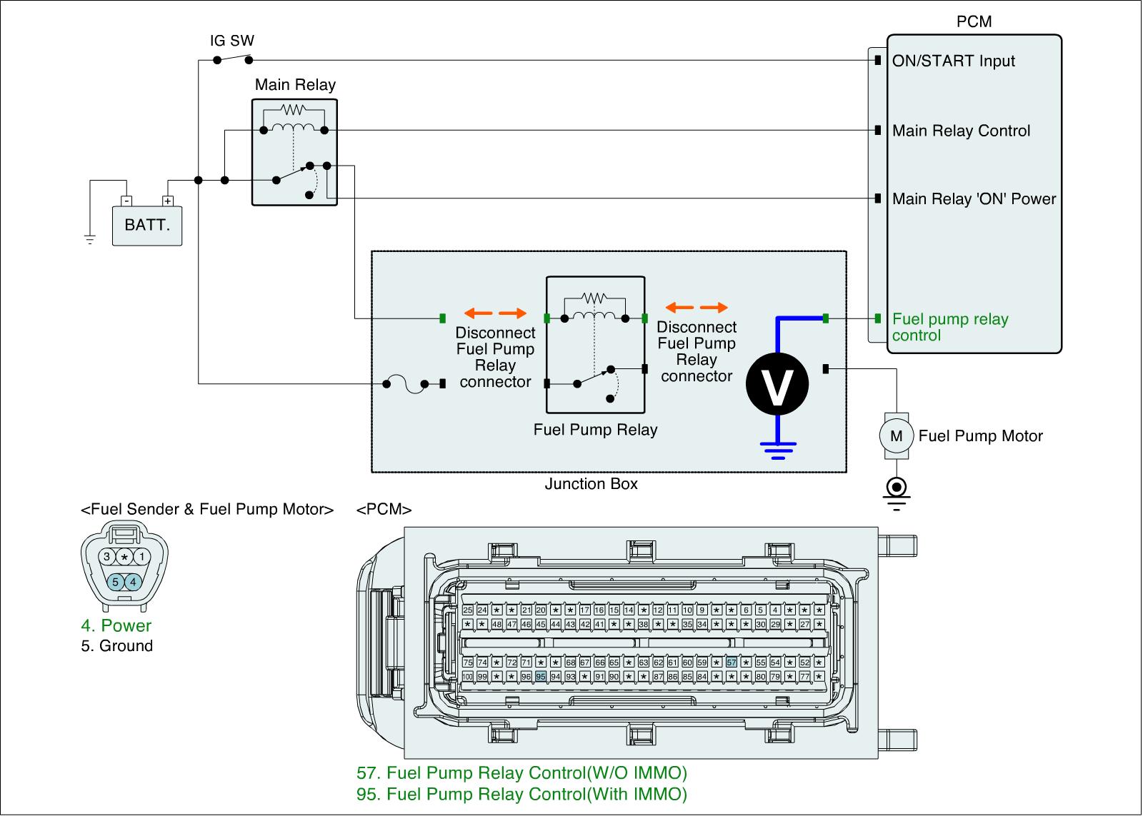 1. IG "OFF" and disconnect fuel pump relay connector.