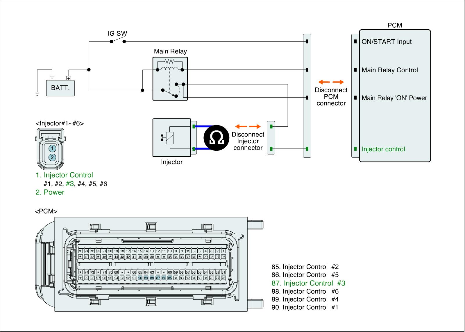 P0268 Cylinder 3 Injector Circuit High - Component Inspection