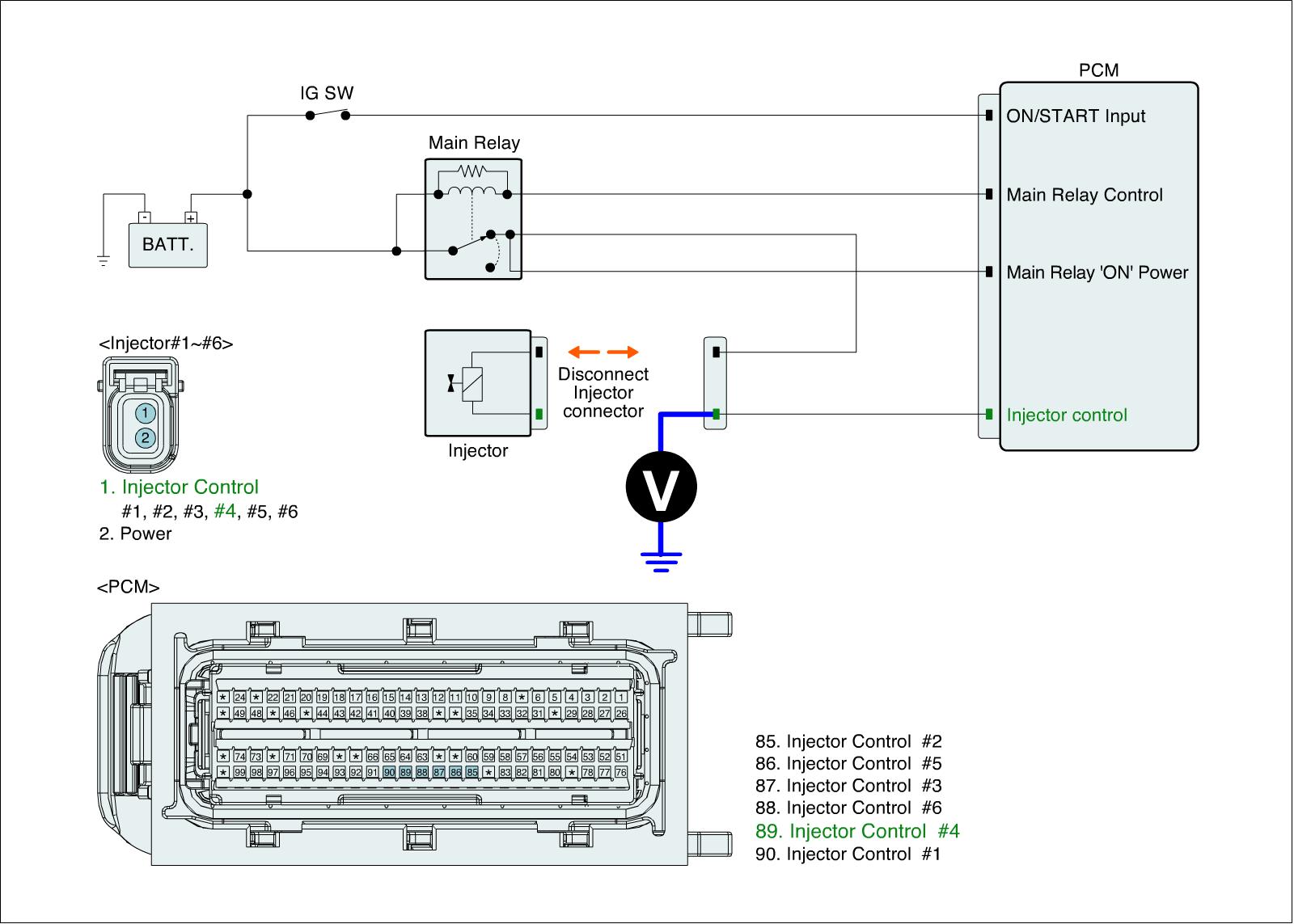 3. Measure voltage between injector control terminal of injector harness connector and chassis ground.