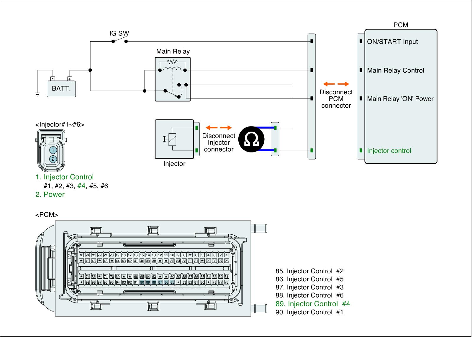 1. IG "OFF" and disconnect injector connector and ECM connector.