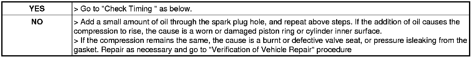 5. Crank the engine with widely opened throttle valve and check compression pressure at each cylinder.