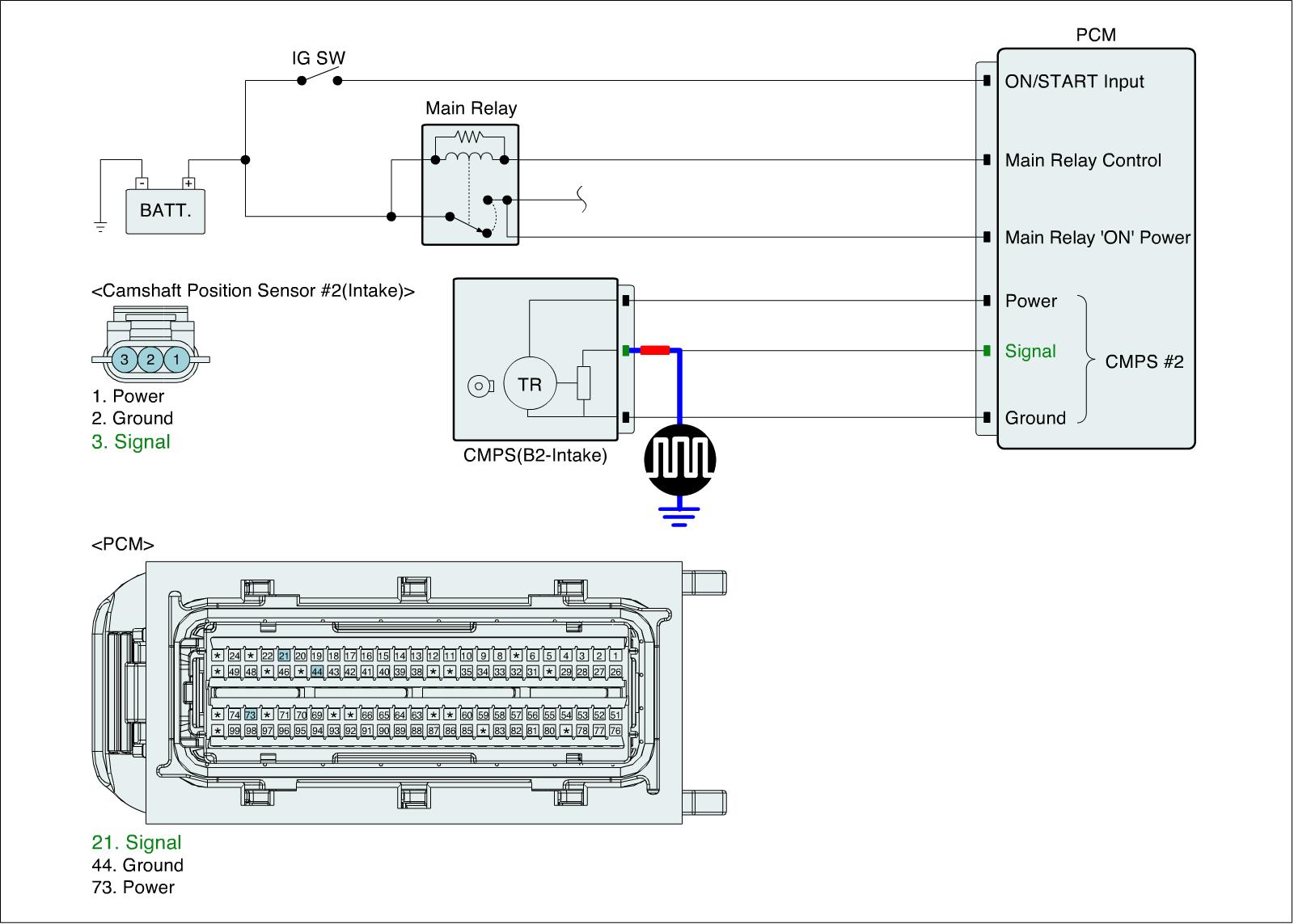 2. ENG "ON" and Measure signal waveform at signal terminal of CMPS.