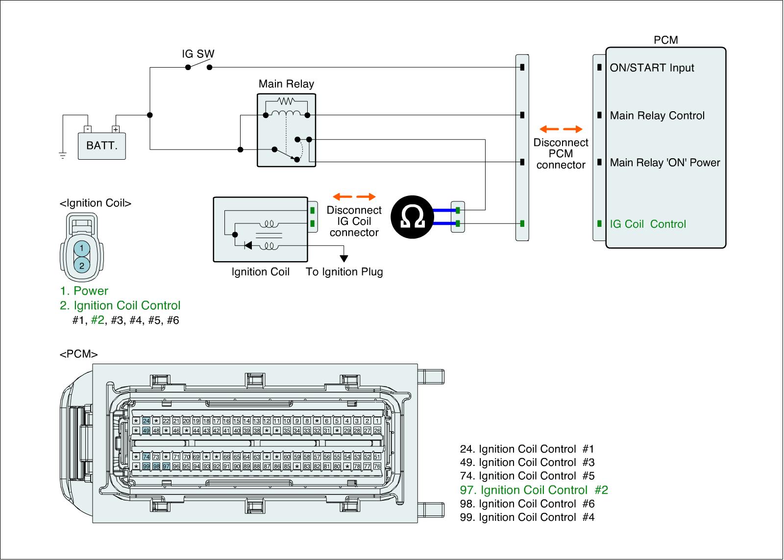 1. IG "OFF" and disconnect Ignition Coil connector and ECM connector.