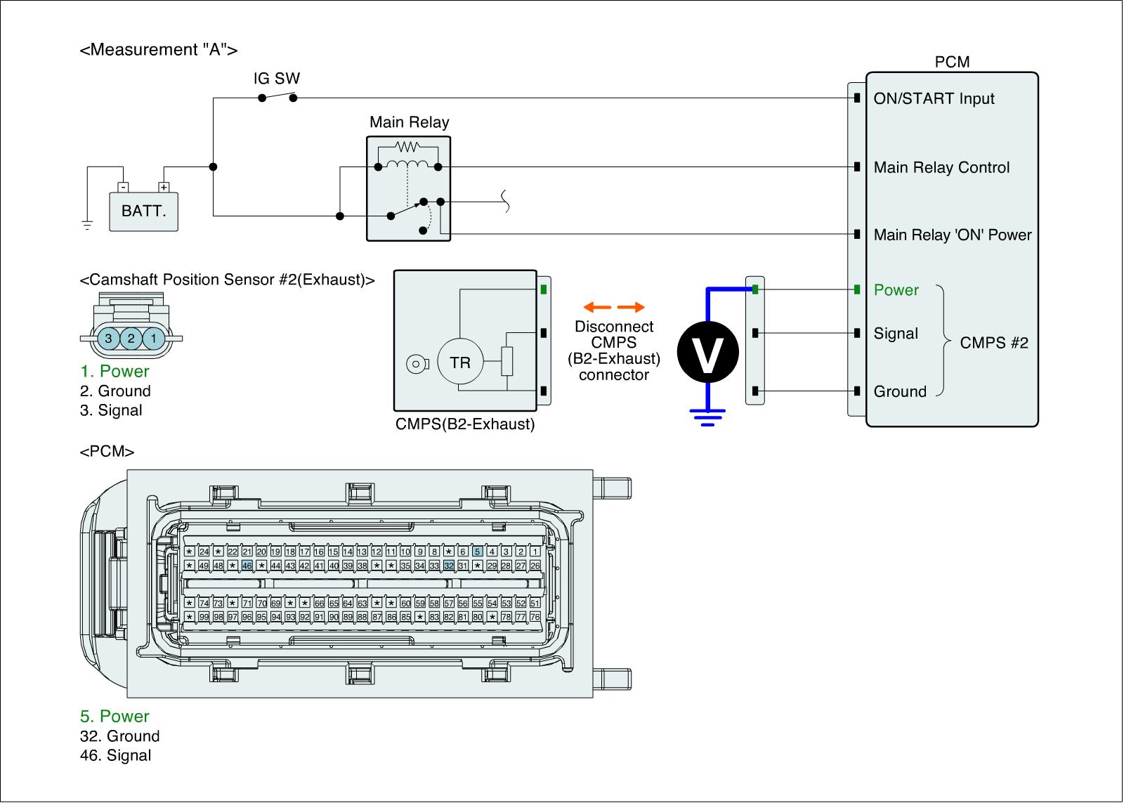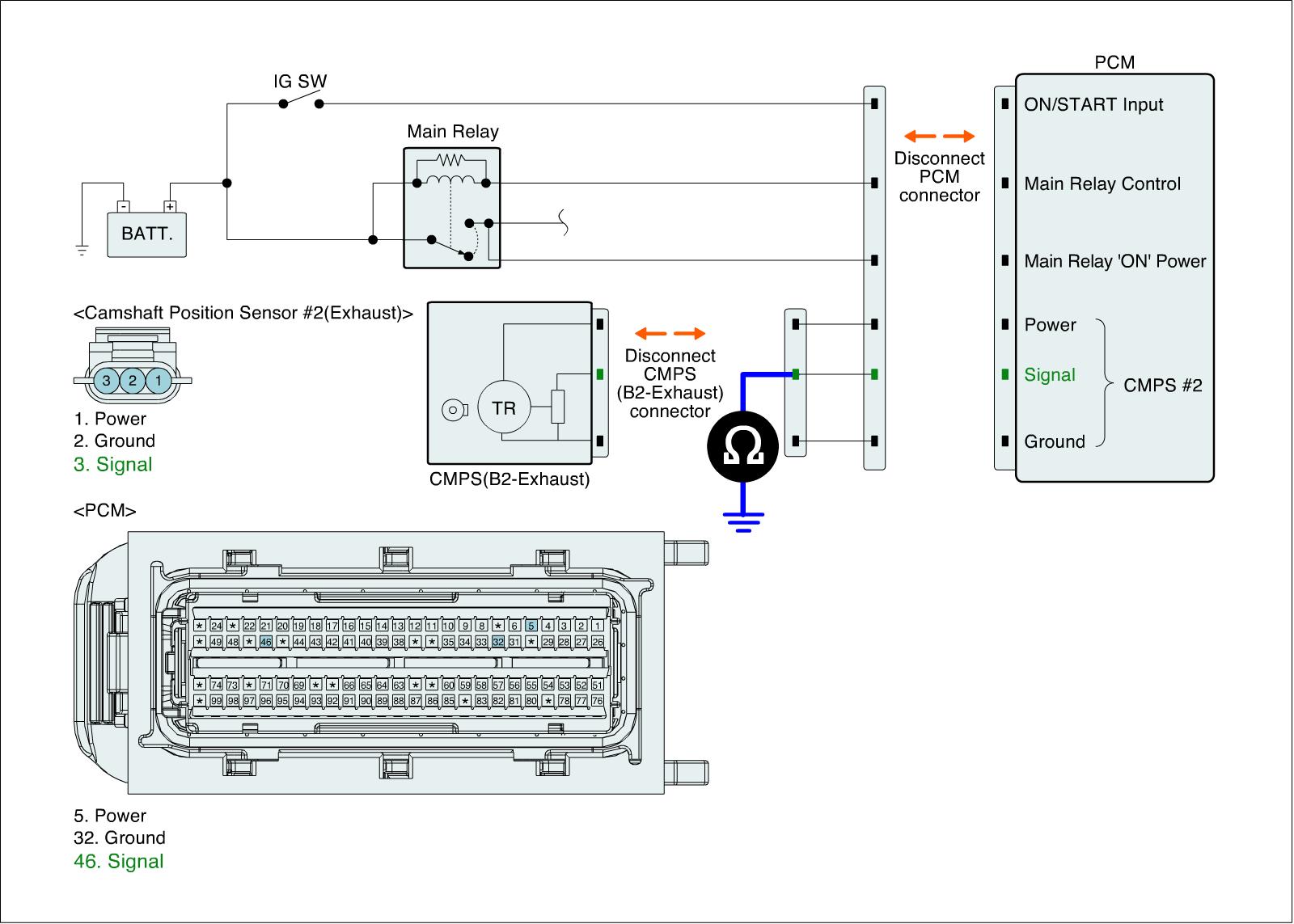 1. IG "OFF" and disconnect CMPS (B2-Exhaust) connector and then IG "ON".