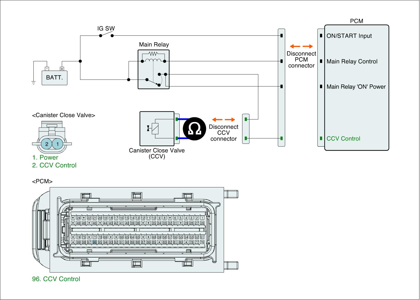 1. IG "OFF" and disconnect CCV connector.