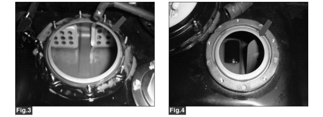 3. Check that the flanges contacting the seals of both the fuel pump and vent valve are not deformed or torn. (Fig.3) & (Fig.4).
