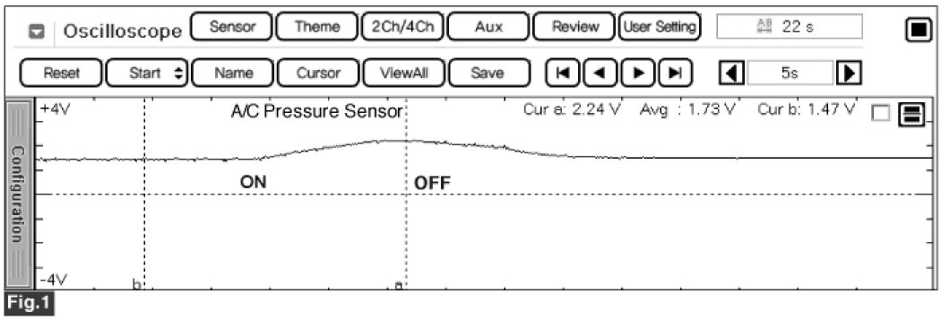 Fig.3) Abnormal data of A/C pressure sensor when A/C pressure sensor circuit open.
