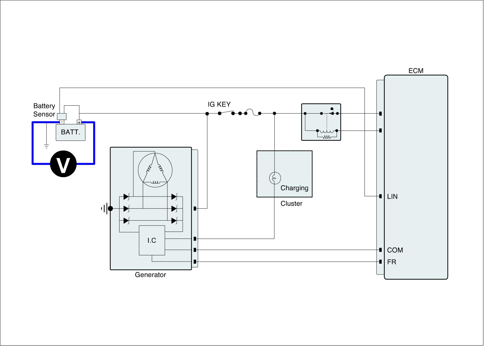 3. Measure voltage between the battery terminal (+) and the battery terminal (-).