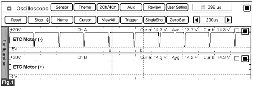 The Electronic Throttle Control (ETC) system is made of the components throttle body, Throttle Position Sensor (TPS) 1 & 2 and Accelerator Position Sensor (APS) 1 & 2. The throttle body contains the actuator, the throttle plate and the throttle position sensor (potentiometer), which are integrated in one housing. The actuator consists of a DC motor with a two-stage gear. The opening angle of the throttle valve is detected by the throttle position sensor which is mounted on the throttle body. And it provides feedback to the ECM to control the throttle motor in order to control the throttle valve opening angle properly in response to the driving condition.