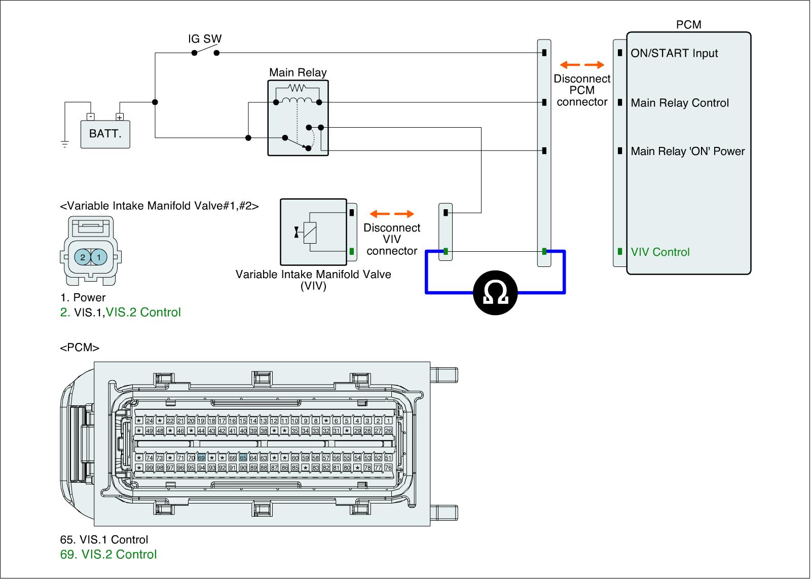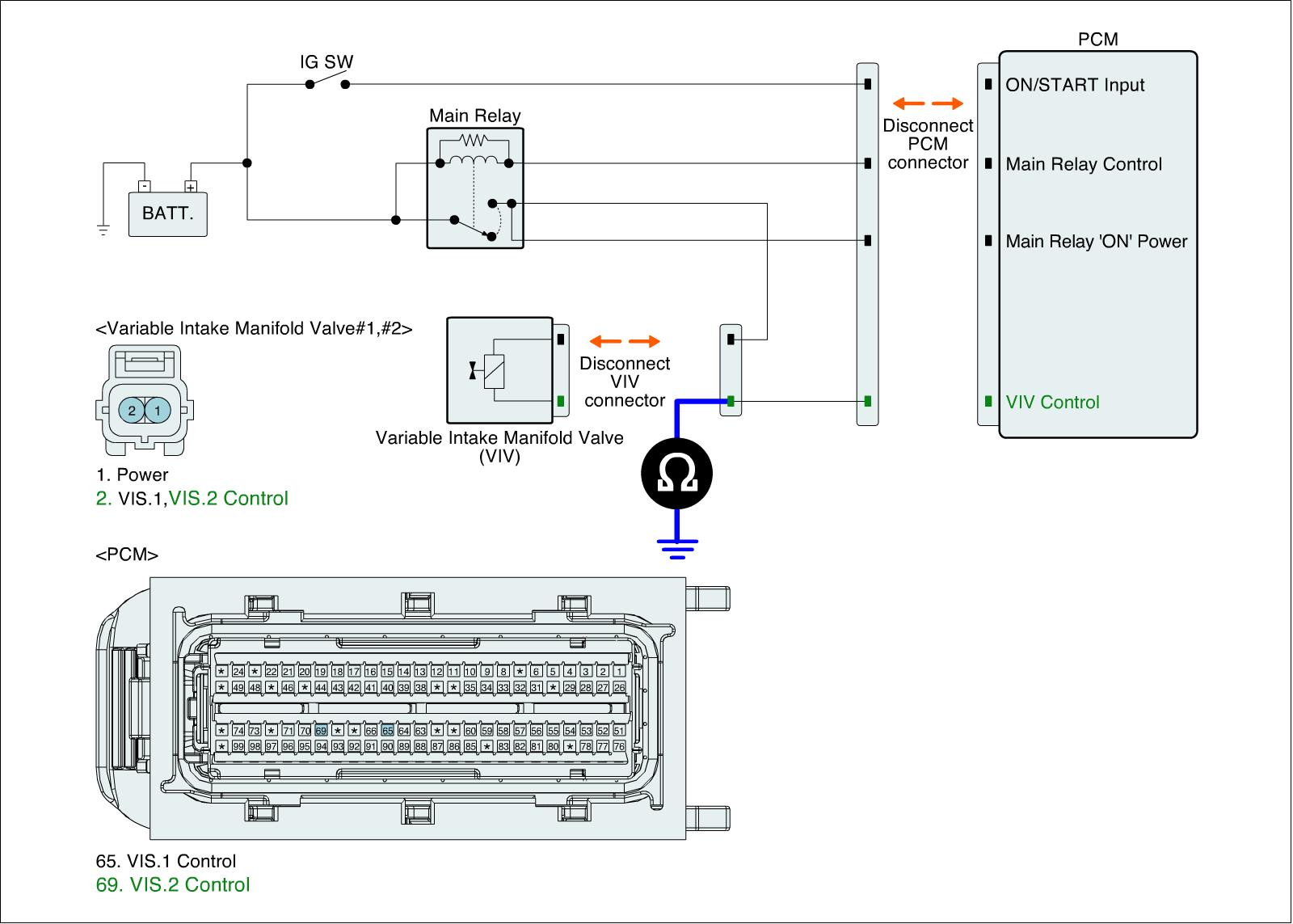 1. IG "OFF" and disconnect VIV connector and ECM connector.