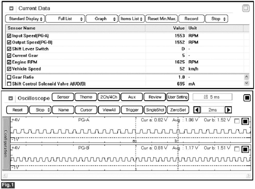 Input speed sensor value must be equal Output speed sensor value times each gear ratio at each gear position of transmission. That operation value equal with TCM operation value. For example Output speed sensor value is 1000 RPM and 5th speed gear ratio is 1.0 then Input speed sensor value must be 1000 RPM.