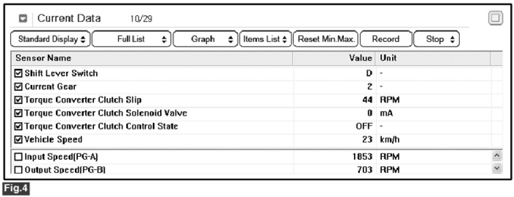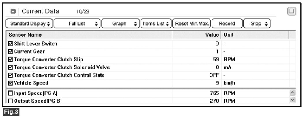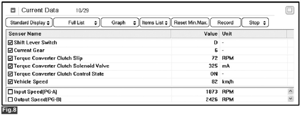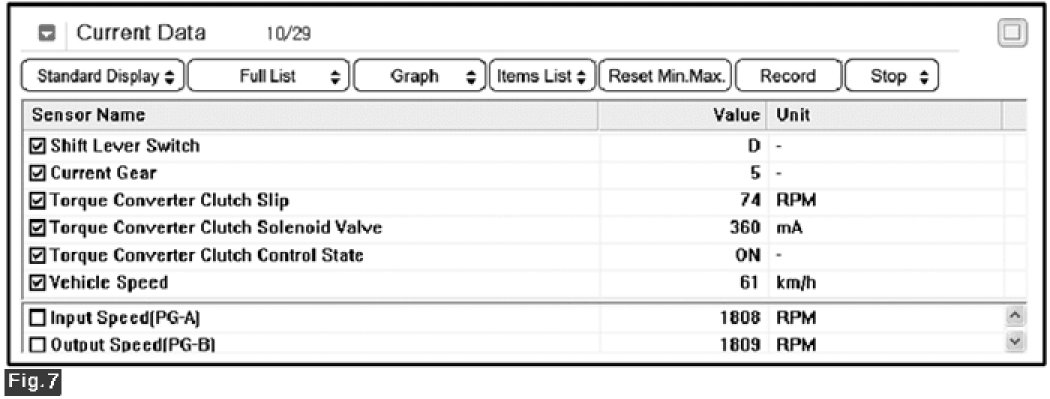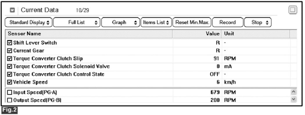 4. Select "Current Data" mode and monitor "Torque converter clutch" parameter.