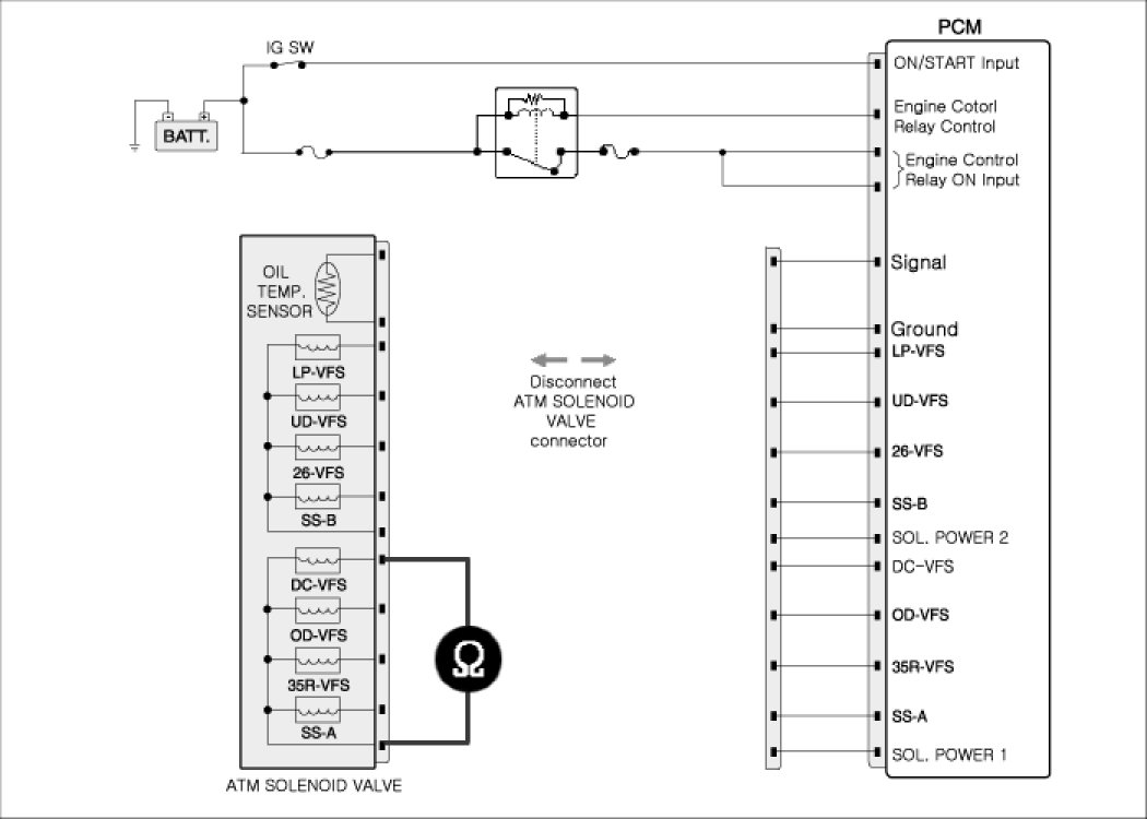 3. Measure resistance between DC solenoid vale terminal of ATM solenoid valve component and ON/START power.